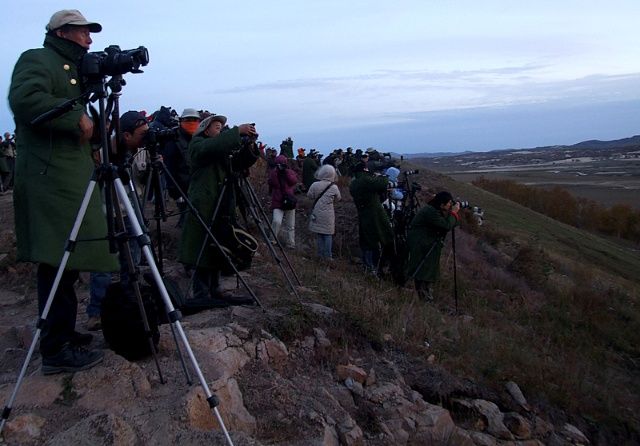 雖然剛?cè)肭?,但壩上的天氣較冷,早晚最低氣溫已達(dá)攝氏零下4度。我們住的賓館里全是各地來(lái)的攝影愛好者和像我這樣的發(fā)燒友。