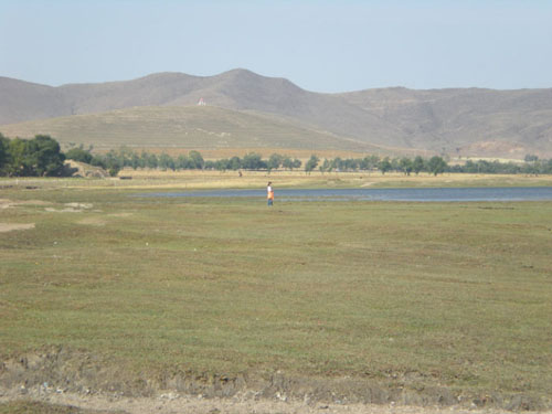 我們騎的那兩匹馬又餓又渴了,騎到湖邊就往水里走,喝水~